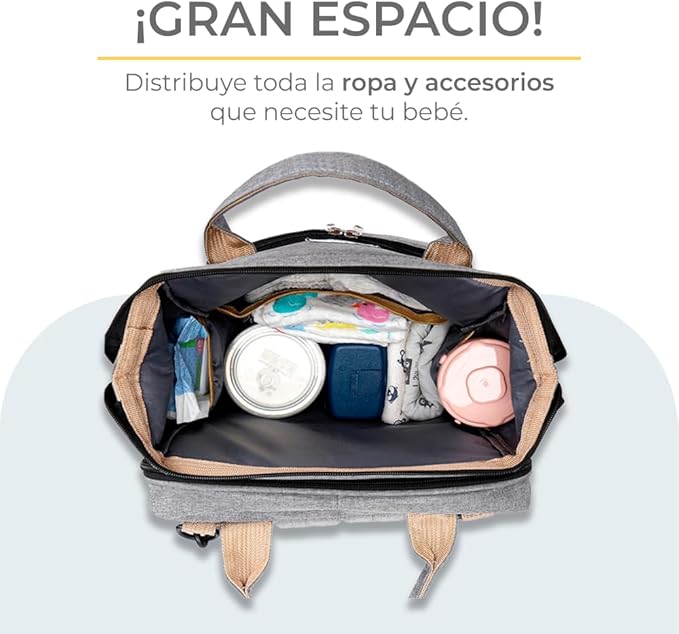 Todo en un solo producto: mochila, cuna y cambiador. Más orden y tranquilidad.